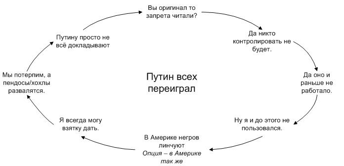 Лень писать - убеждать убежденных и образовывать бегущих мысли и образования смысла нет. Лучше, чем Gent, Roman и иже с ними я вряд ли напишу. Но читаю их "с глубоким удовлетворением" - прямо не верится, остались же еще в России независимо думающие люди! Только боюсь, что штучно...