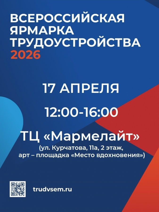 Всех, кто хочет построить успешную карьеру приглашают на всероссийскую ярмарку трудоустройства «Работа России. Это Ваш шанс найти работу мечты, сменить профессию или просто узнать, какие специалисты сейчас нужны рынку. Где: ТЦ «Мармелайт», 2 этаж, арт-площадка «Место вдохновения». Когда: 17 апреля с 12:00 до 16:00.